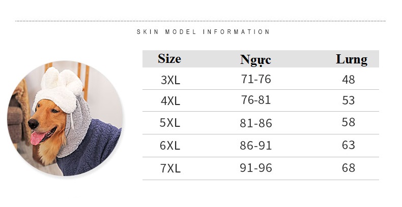 Lưu ý: Số liệu trên chỉ mang tính chất tương đối. Size áo còn phụ thuộc vào giống cún và độ dày lông. Để chọn chính xác cỡ áo cho chó mèo, bạn vui lòng chat trực tiếp cho shop để được tư vấn tốt nhất. Xin cảm ơn!