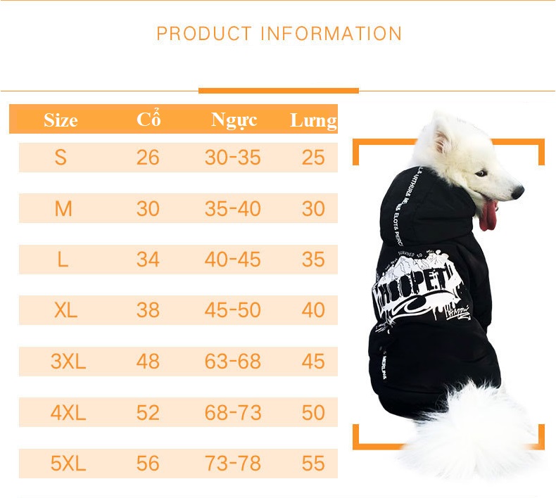 Lưu ý: Số liệu trên chỉ mang tính chất tương đối. Size áo còn phụ thuộc vào giống cún và độ dày lông. Để chọn chính xác cỡ áo cho chó mèo, bạn vui lòng chat trực tiếp cho shop để được tư vấn tốt nhất. Xin cảm ơn!
