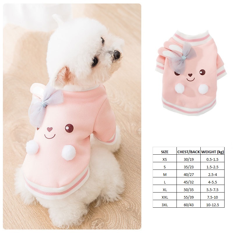 Áo Thỏ Hồng Lót Nỉ Cho Chó Mèo Siêu Xinh