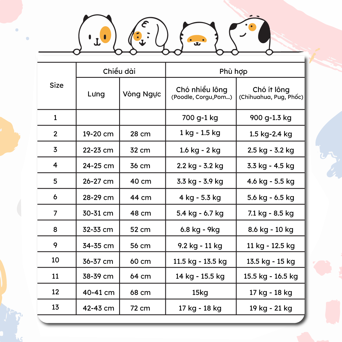 Nhà Puppy Pet có sẵn size 8, size 10 phù hợp với nhiều dòng Cún. (Tham khảo bảng size ở trên hình ảnh)