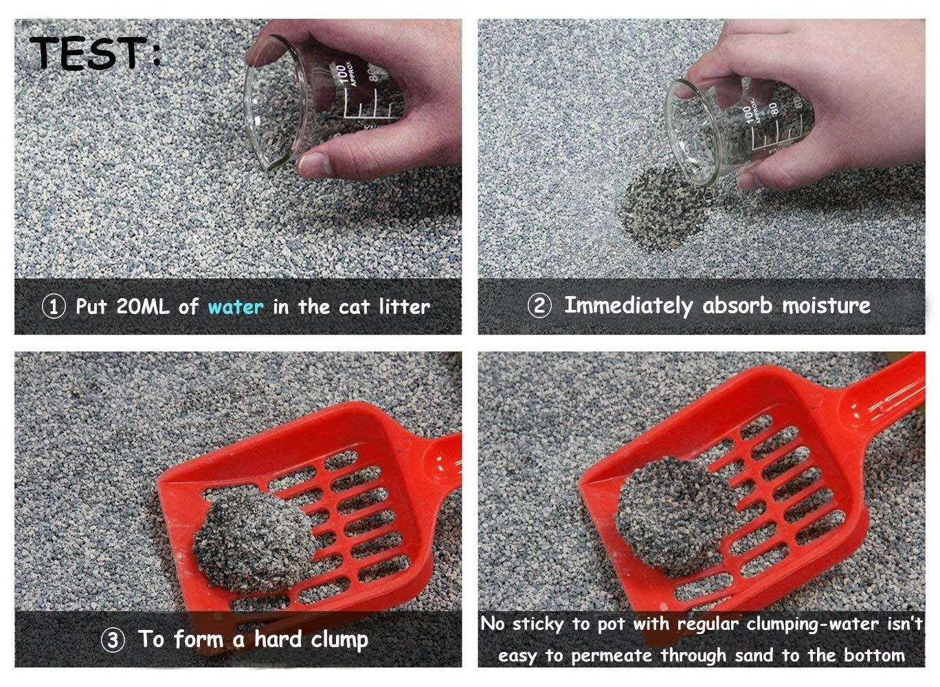 - Ngay sau khi mèo đi vệ sinh, cát vệ sinh America Litter sẽ vón thành cục ngay lập tức khi tiếp xúc với nước thải của mèo.