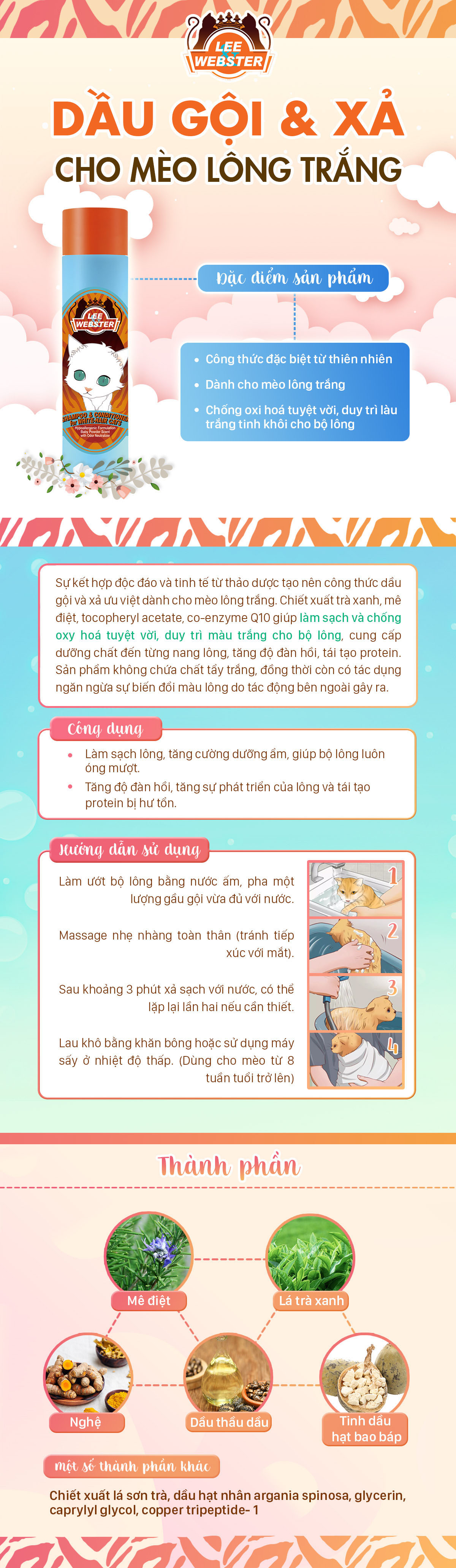 Dầu gội và xả cho Mèo lông trắng Lee Webster