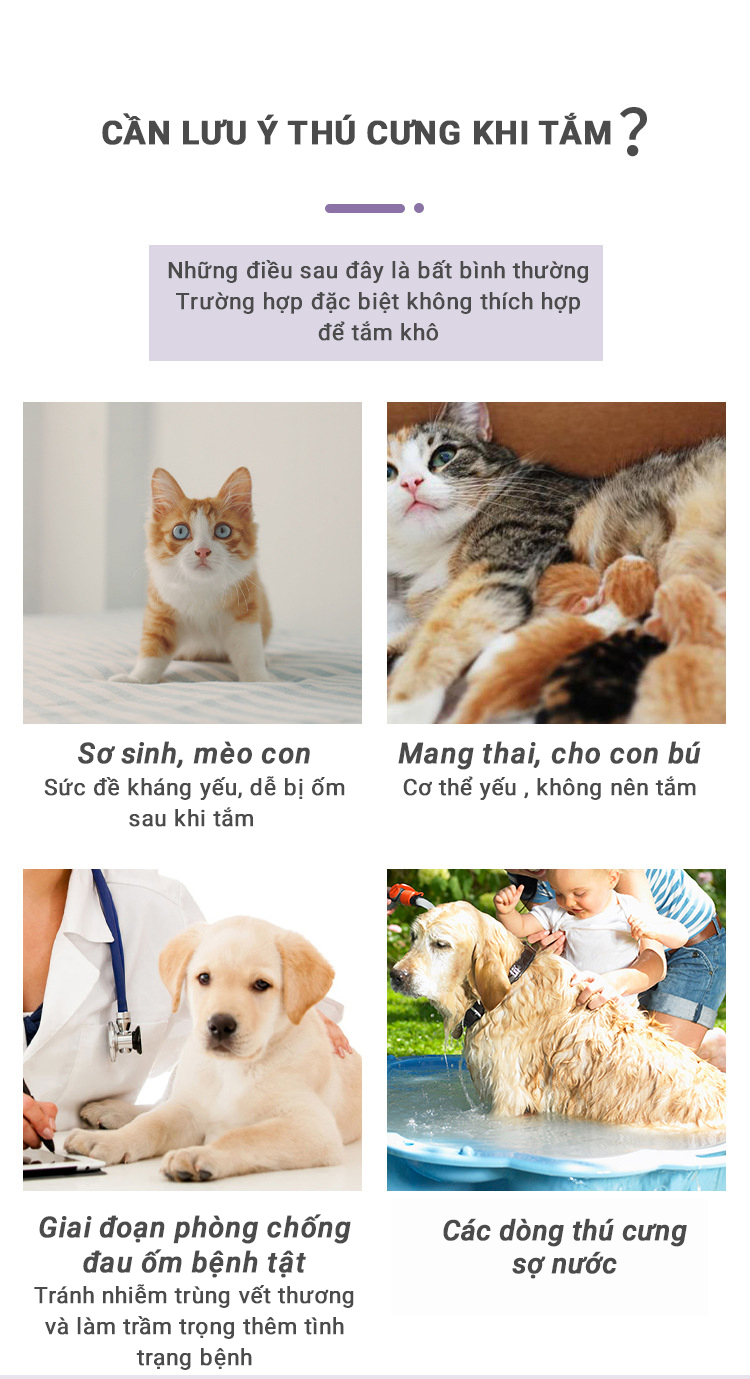 - Dùng khăn khô lau sạch hoặc dùng máy sấy để lông khô nhanh hơn.