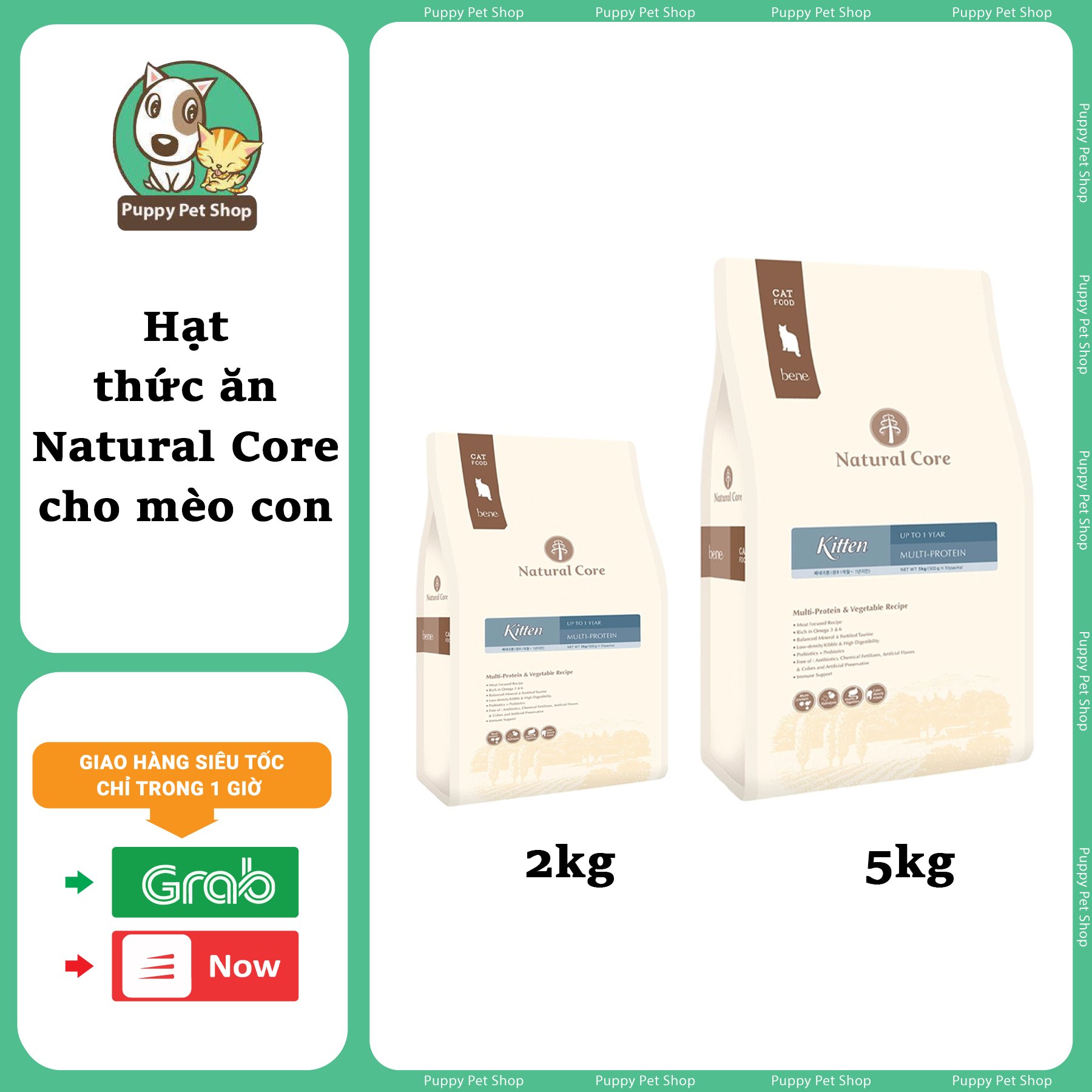 - Thức ăn cho Mèo con hữu cơ Natural Core Kitten là sản phẩm của thương hiệu Natural Core, Hàn Quốc có thành phần chính là thịt gà tươi rút xương và cá hồi. Đây là hai nguồn protein dồi dào, giúp mèo con phát triển cơ bắp và hệ miễn dịch khỏe mạnh. Natural Core Kitten được sản xuất theo tiêu chuẩn hữu cơ quốc tế, đảm bảo an toàn và lành mạnh cho sức khỏe của mèo con.