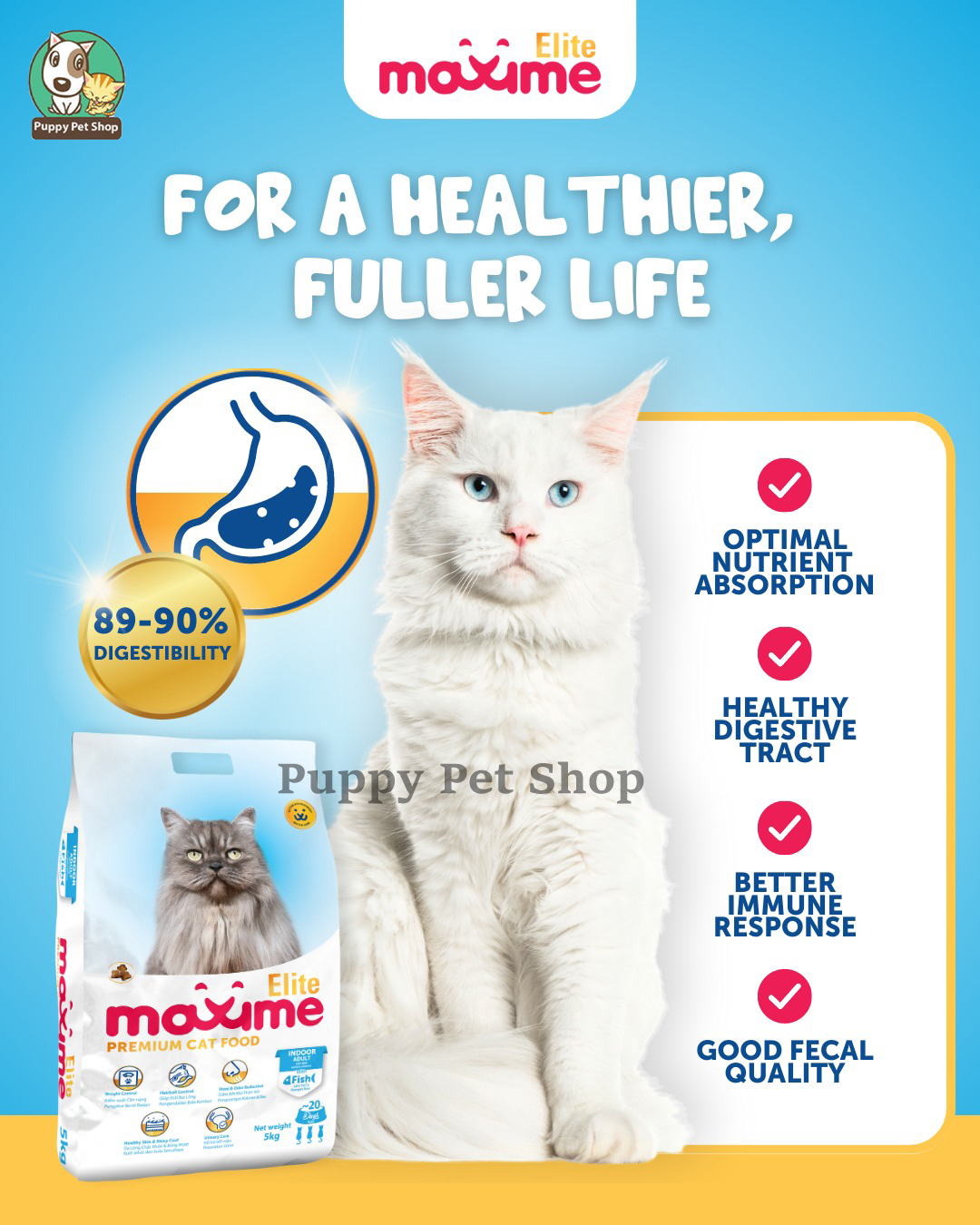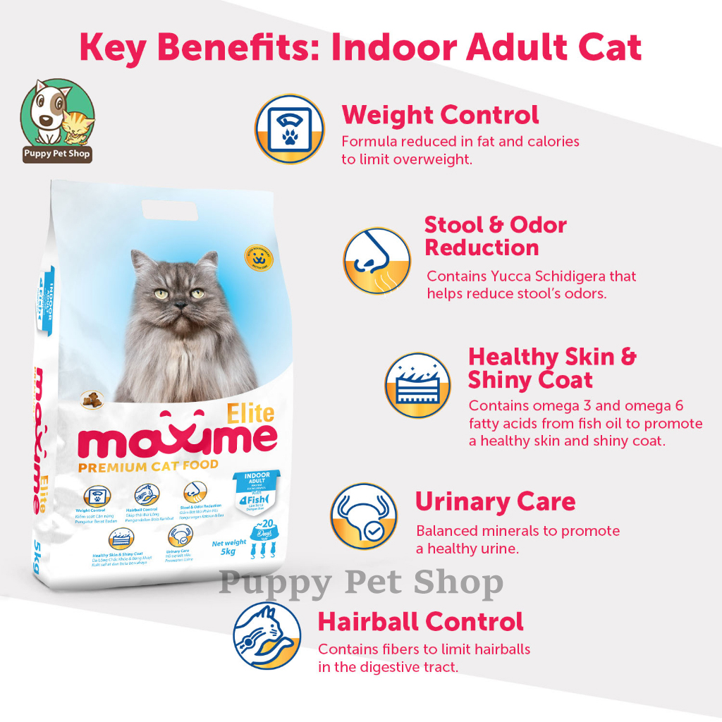 Thức ăn khô Maxime Elite có hương vị cá được đặc chế đặc biệt dành cho mèo trưởng thành sống trong nhà.