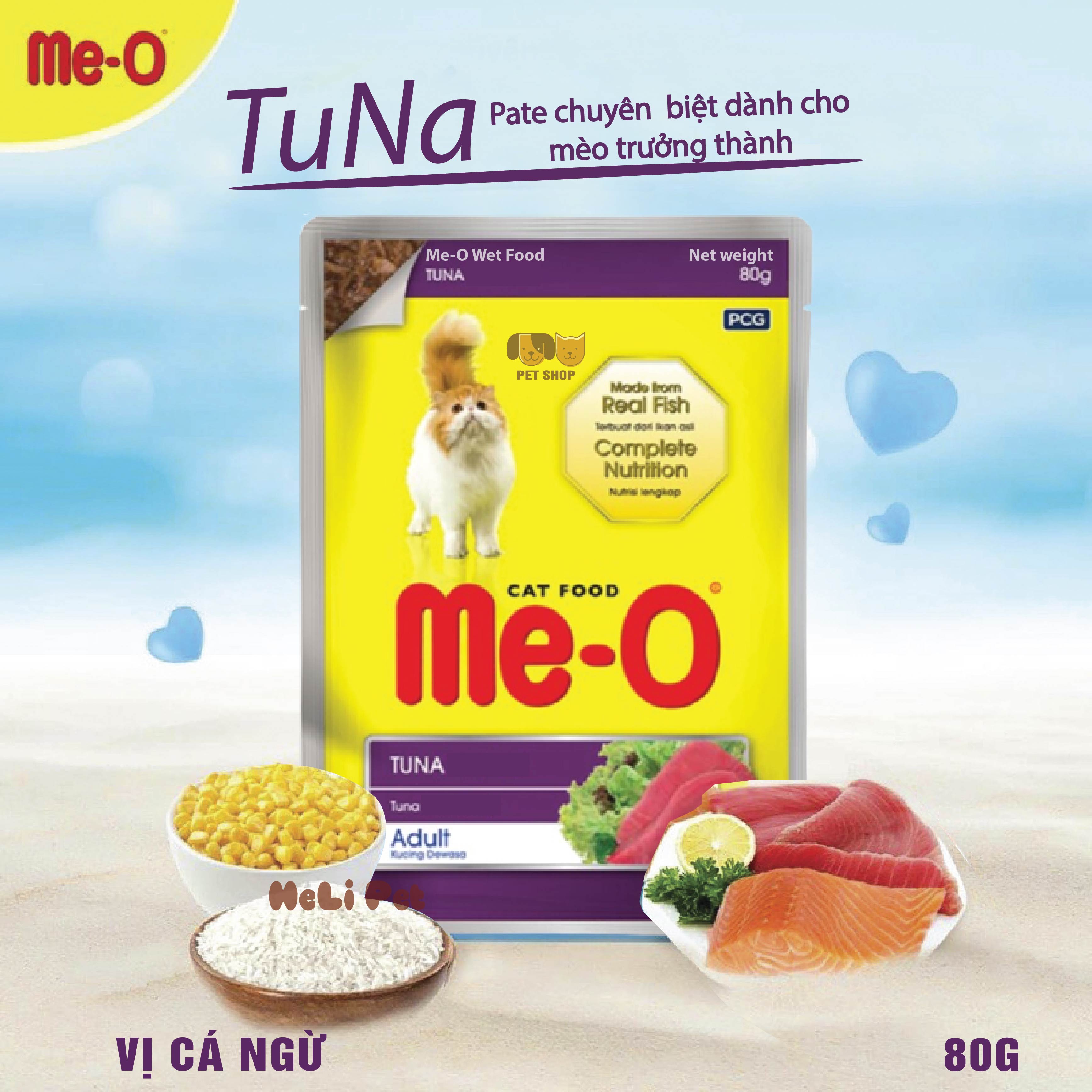 - Me-O dành cho mèo trưởng thành dạng túi được làm từ công thức hoàn hảo từ cá tươi chất lượng đảm bảo, hương vị thơm ngon và tăng cường sức khỏe của mèo.
