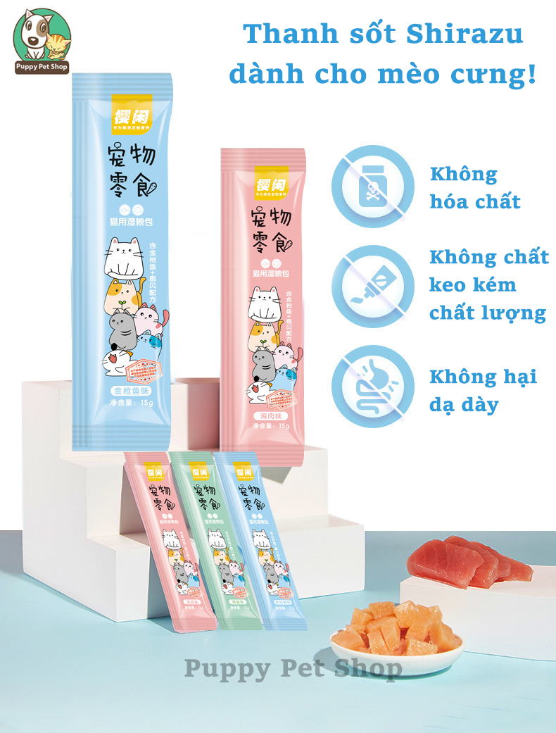 Thanh sốt cho mèo Shizuka đủ vị - GÀ- CÁ HỒI- CÁ NGỪ