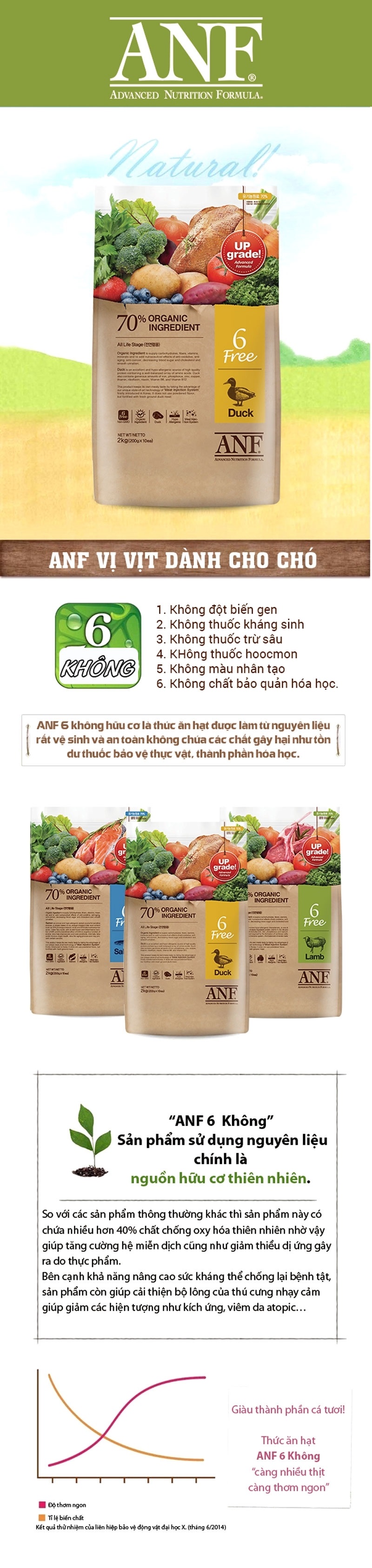 Thức ăn hạt hữu cơ ANF 6Free cho chó vị vịt 6kg