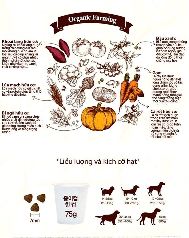 Với 95% nguyên liệu hữu cơ thiên nhiên, sản phẩm thức ăn cho chó của chúng tôi tự tin giúp cho thú cưng của bạn khỏe mạnh và đẹp đẽ mỗi ngày.