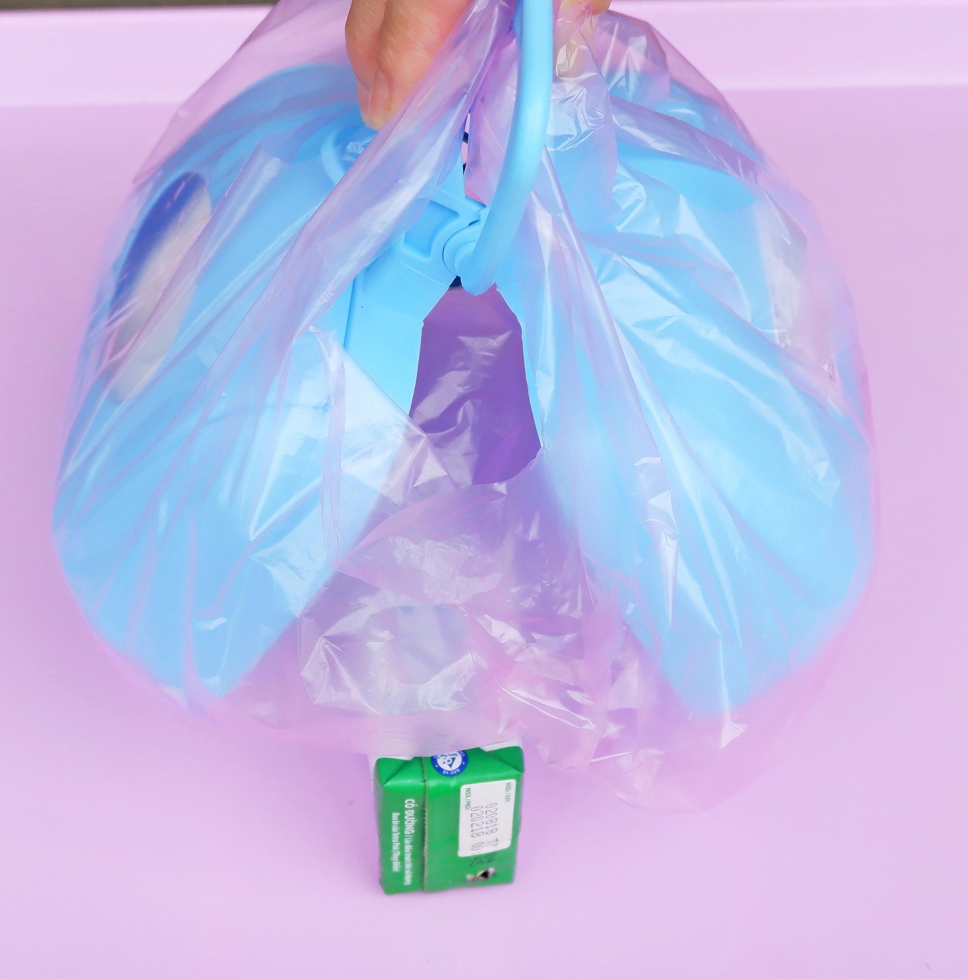 - Cách thứ 1: Bọc túi Nilon bên ngoài hộp gắp, sau đó gắp chất thải và lộn ngược túi ra vứt