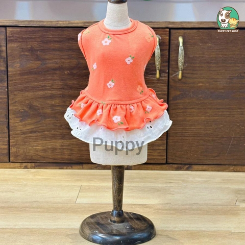 Váy Cam Họa Tiết Hoa Nhỏ Xinh Xắn Cho Thú Cưng