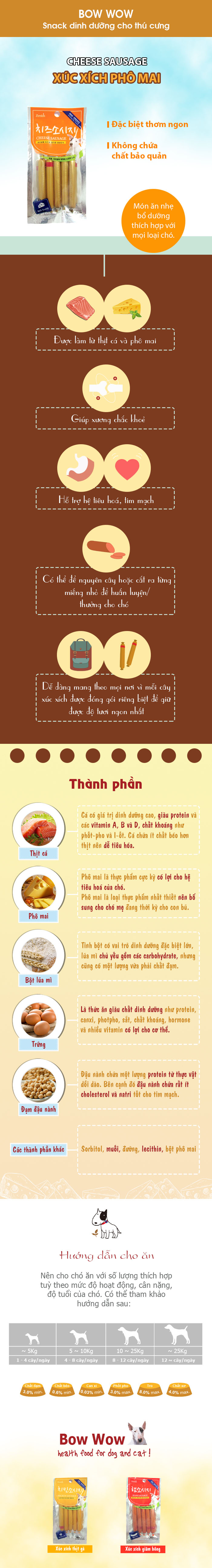 Xúc xích phô mai Bowwow với hương vị đặc biệt thơm ngon, không chứa chất bảo quản, là món ăn nhẹ bổ dưỡng được cả chó...